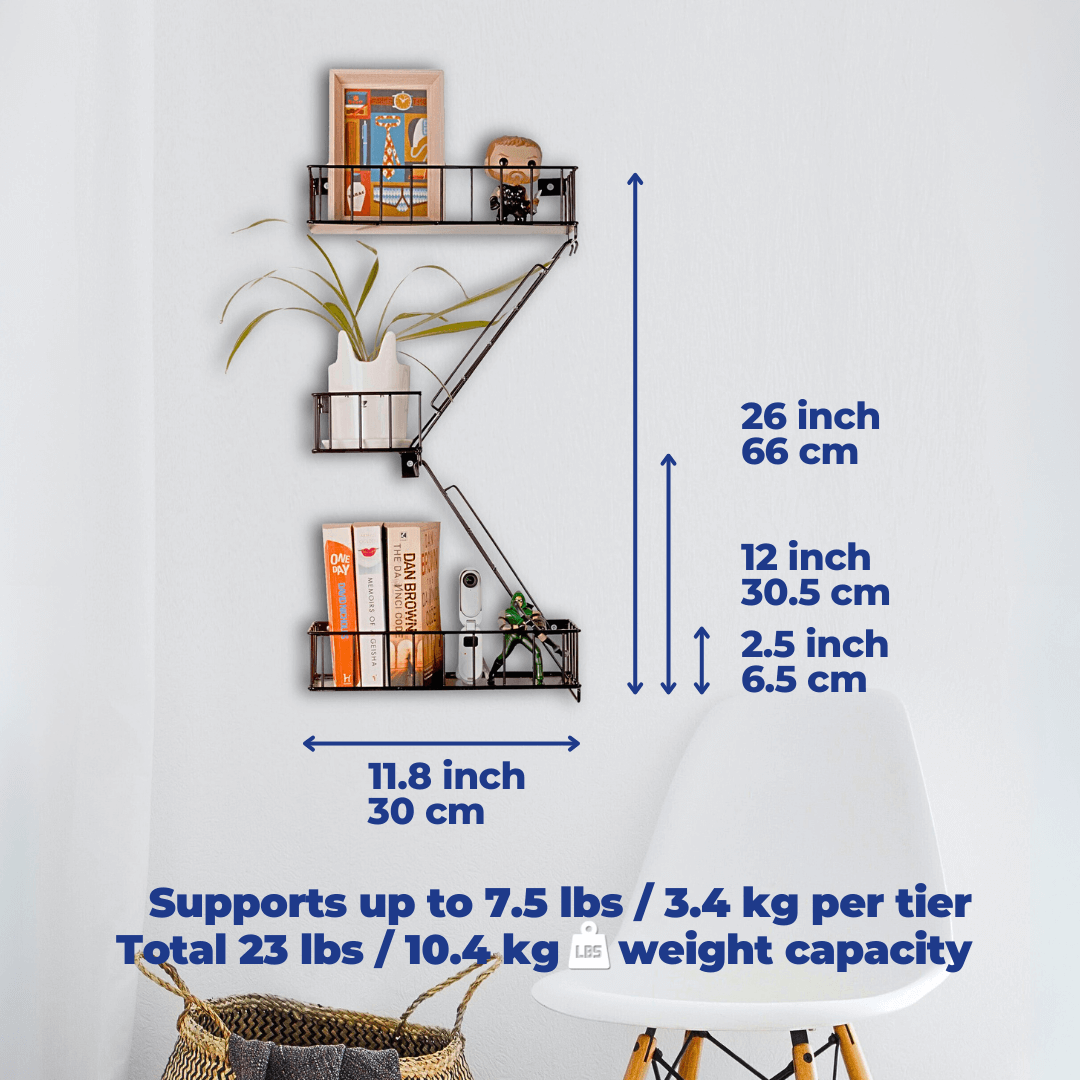 - STRONG METAL FRAME – Made from durable black metal, the shelf ensures secure and stable storage, while its open design enhances accessibility and a lightweight visual appeal.